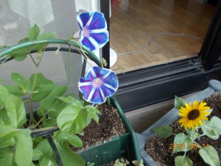 夏本番を迎え、向日葵も朝顔も笑顔でいっぱい!! 2016年08月12日 向日葵が咲いてくれました(^^♪ベランダが明るくなり朝お水をあげると、わたしも元気になりま~す まるで朝顔とひまわりがお話ししているみたい(^^♪