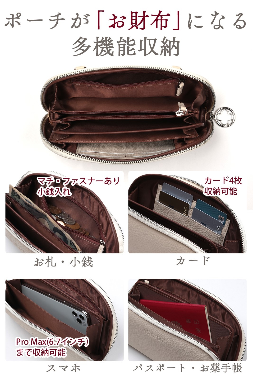 商品名Astartia アスターティア 本革 スマホお財布ショルダー 軽量 斜め掛け 高機能ポケット 上品でカジュアル 大人可愛い ミニマルスタイル 横型 レディース